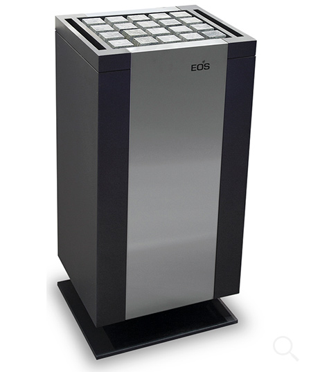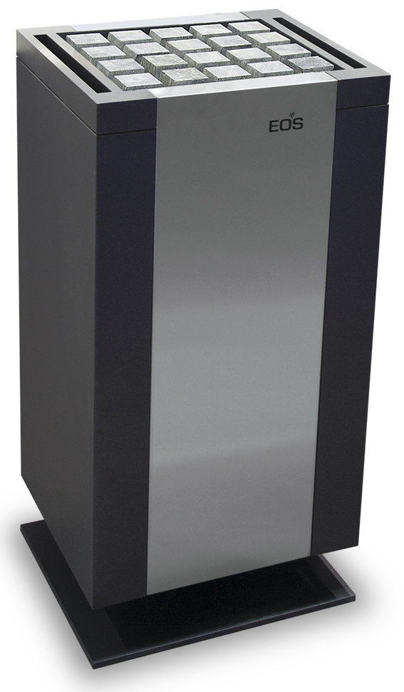 Designer Saunaofen im einzigartigen kubistischen Design für die mittelgroße private Saunakabine. Dank der perfekten kubistischen Form und dem optimal abgestimmten Standfuß kann der Mythos Ofen hervorragend vor Glasflächen platziert werden.