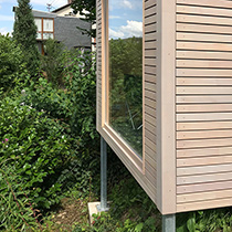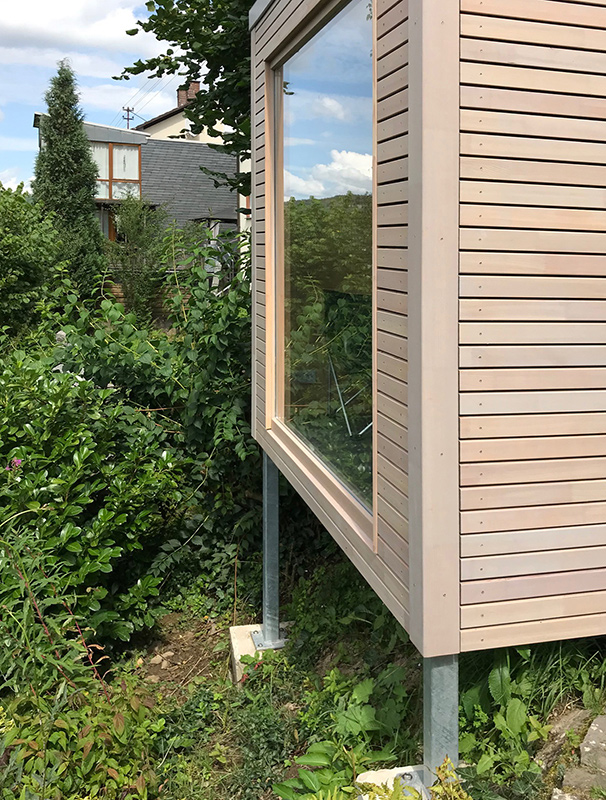 Der Ruhebereich steht auf verzinkten Stahlstützen die wiederum auf Punktfundamenten verankert sind.