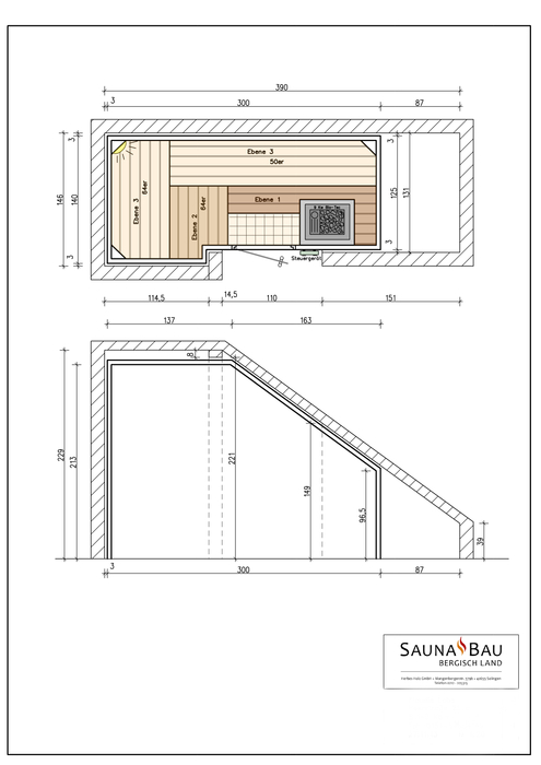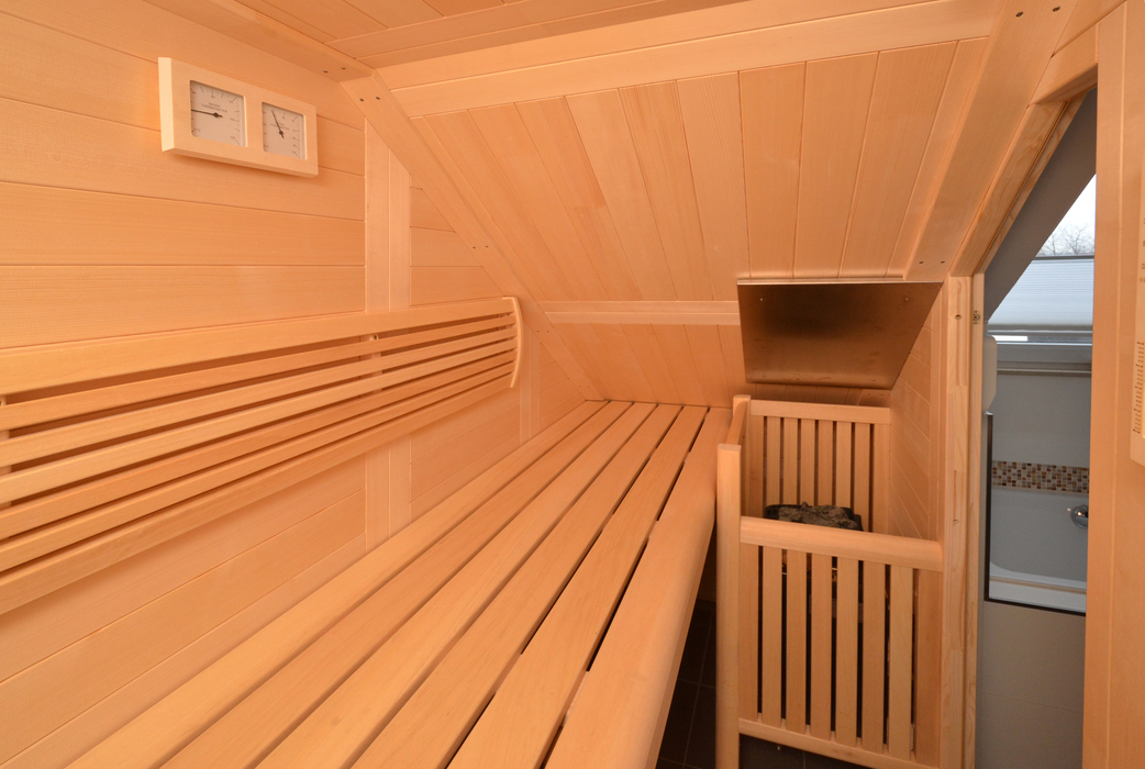 - Zugang zur Saunakabine vom vorhandenen Bad
