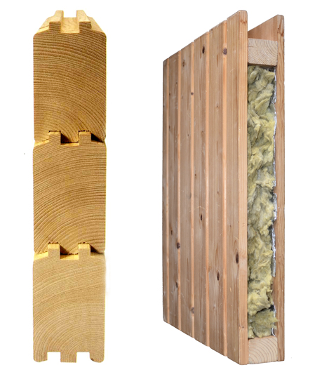 isolierten Elementen und Massivholzbauweise (unbehandeltes,