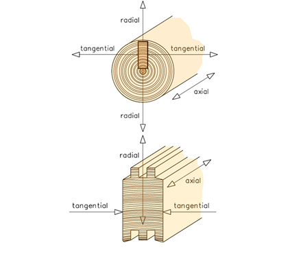 Vorgang verändert Holz sein Volumen in drei Richtungen, es